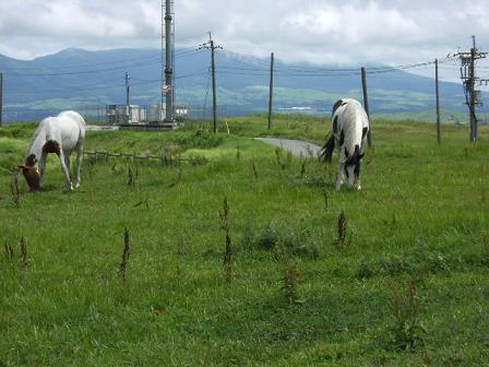 馬も普通に道路脇でお食事中・・。